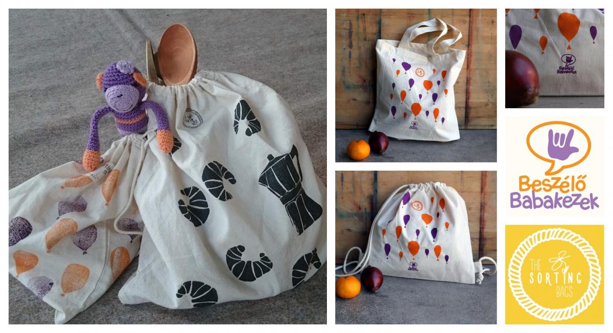 Nemes Iringóval, a TSB megálmodójával 2016-ban találkoztam, amikor a 6 hónapos kislányával járt hozzám babajelbeszéd-tanfolyamra. Iringótól kaptam egy szép zsákot ajándékba, mert hálás volt, hogy bevezettem őt a babajelbeszéd világába és látta, milyen sok játékos zsákom van. The Sortig Bags-es címke volt a szép, kézzel nyomdázott zsákon. Gyorsan utánanéztem, hogy mi is ez a The Sorting Bags.