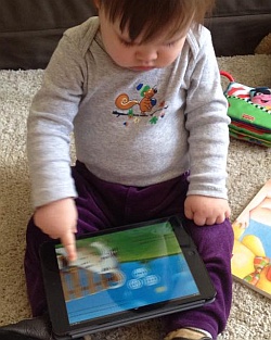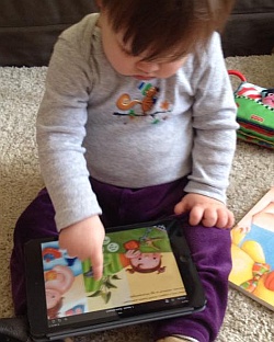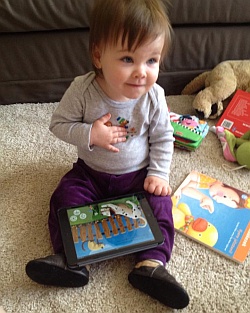 De cuki ez a kislány! Tényleg nincs még egyéves? Mennyi idős? Nem túl kicsi az elektornikus kütyükhöz? Látom könyv is ott van, azt is szereti olvasni?