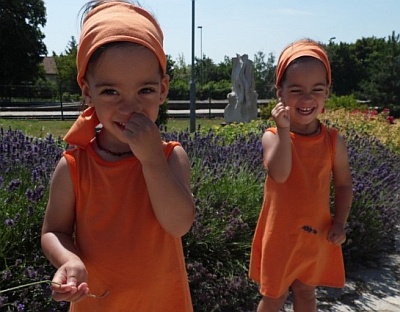 A lányok a levendulával a Babakezek közösség színeit viselik: lila-narancs. :-)