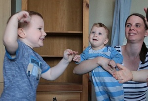 „Semmiképp sem akartam, hogy a kicsi kimaradjon a jelelésből, ezért is vágtunk bele újra a tanfolyamba.” – meséli Zsuzsa. „Kristófnál is nagyon hasznos volt a jelelés, mindenki csak ámult, hogy milyen okos és ügyes. Remek volt, hogy tudta mutatni mit akar, ő is élvezte, hogy meg tudja értetni magát. Most, hogy Ábi is jelelő korba lépett, Kristóf kérdezgeti, hogy minek mi a jele, mert ő is mutatni akarja a tesójának. Kristóf néha bele is szól, ha szerinte rosszul jelelek valamit.