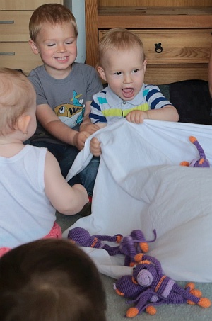 „Mindkét gyereknél tetszett, milyen korán tudnak és mernek kommunikációt kezdeményezni a jelek és a hangok segítségével, mennyire figyelnek a környezetükre (kutyaugatás, repülő), hogy "szólhassanak" róla.” – meséli Nóri. „Azért szeretek a Babakezek tanfolyamra járni, mert mindkét gyerek tényleg jól érzi magát és szülőként sok ötletet kapok az itthoni játékhoz.”